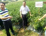 朱理事长在基地检查辣椒生...